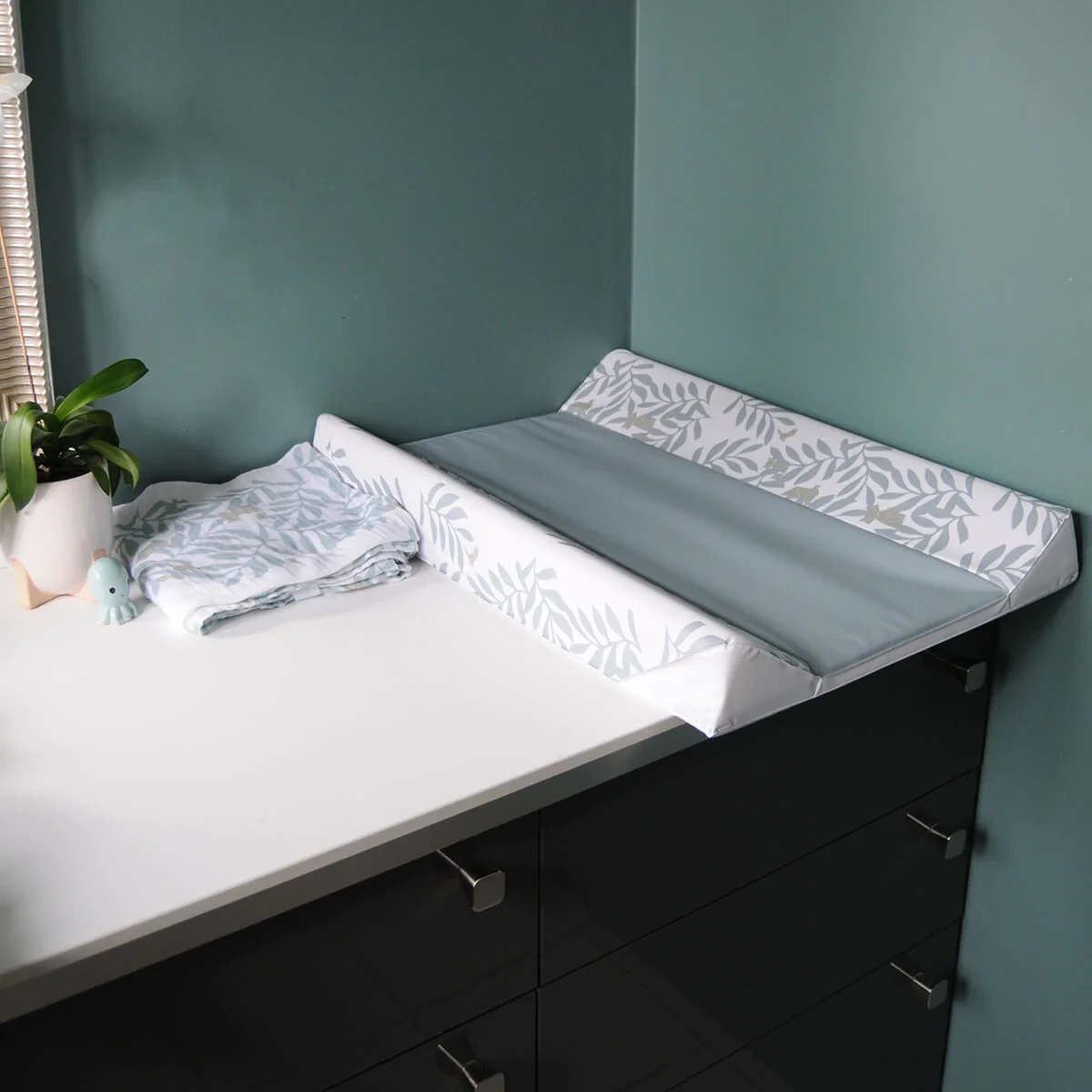 Dans un joli mélange de vert d’eau et de blanc, le matelas à langer Premium est orné d’impressions qualitatives Day Break. Ce matelas à langer Premium imperméable convient à de nombreux modèles de tables à langer grâce à sa taille standard. Il propose des bords latéraux rehaussés pour plus de sécurité et de confort lors du change.