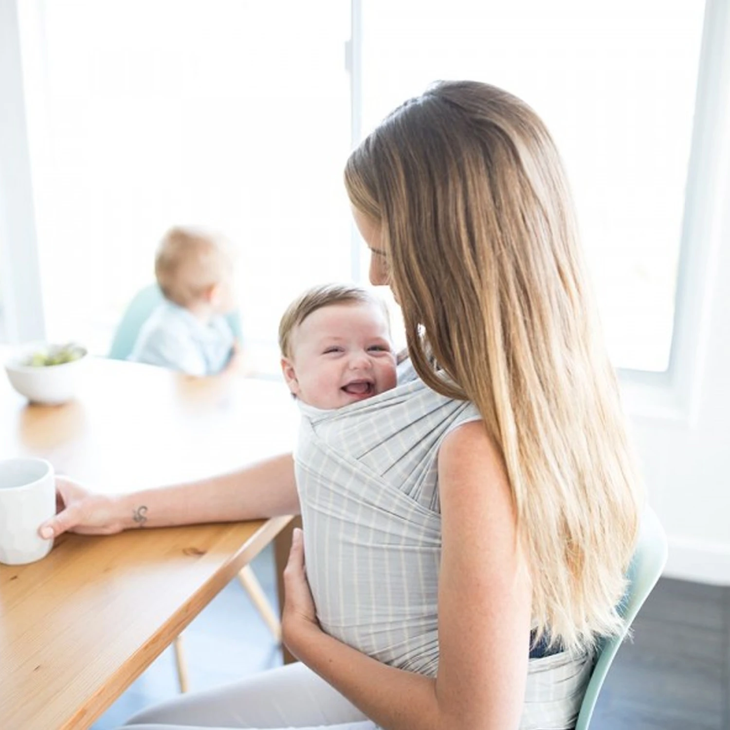 Rien de tel pour calmer un bébé que les battements de cœur de sa maman. L’écharpe de portage Aura est facile à nouer et parfaite pour les débutants. Enroulez jeunesse !