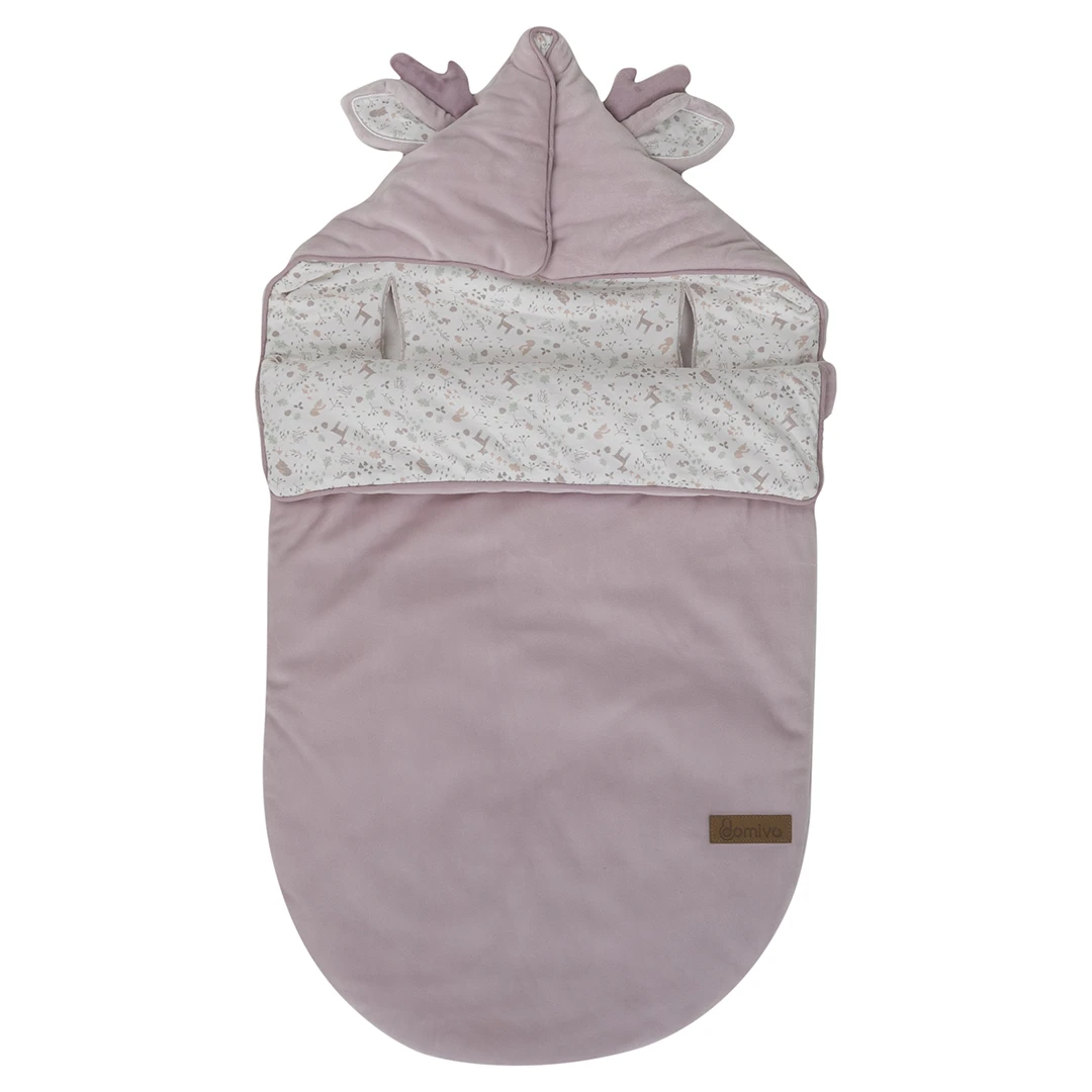 Le nid d’ange Lilas et ses oreilles de faon est conçu en jersey pur coton pour le plus grand confort de bébé. Rembourré de ouate et agrémenté d’un tissu extérieur velours, il est parfait pour garder bébé bien au chaud.