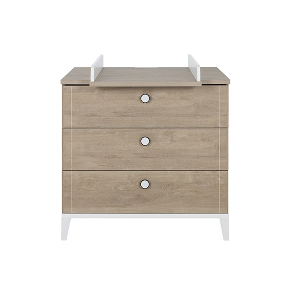 Besoin de préserver l’espace dans la chambre de bébé ? Malin, le plan à langer Marcel vendu avec la commode de la même collection permet de la transformer en meuble à langer. Une économie de place bienvenue dans les petites chambres pour enfant. Cette option est aussi intéressante pour les espaces plus grands si vous souhaitez préserver une surface importante pour laisser un terrain de jeu suffisant à bébé.