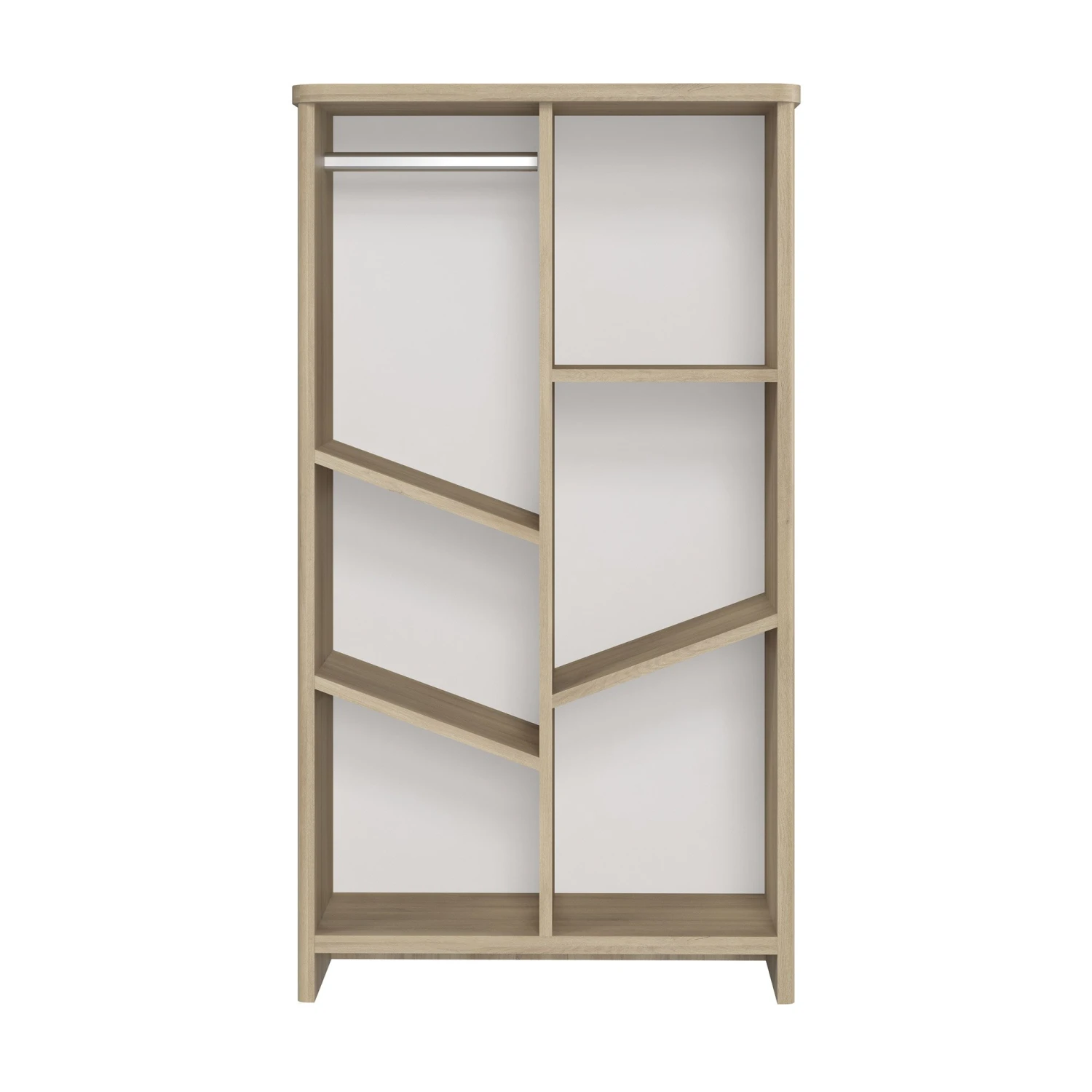 - 1 tube penderie, 3 tablettes obliques, 1 étagère droite