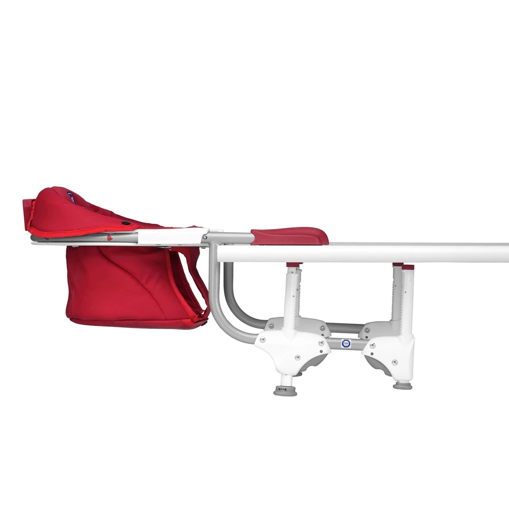 Le système de fixation s’adapte facilement à la plupart des tables et dispose d’un système de fixation à double ajustement pour une sécurité maximale. Le revêtement textile du siège est déhoussable et lavable. Ultra-compact une fois plié, le siège peut être transporté facilement grâce à son sac de transport inclus très pratique.