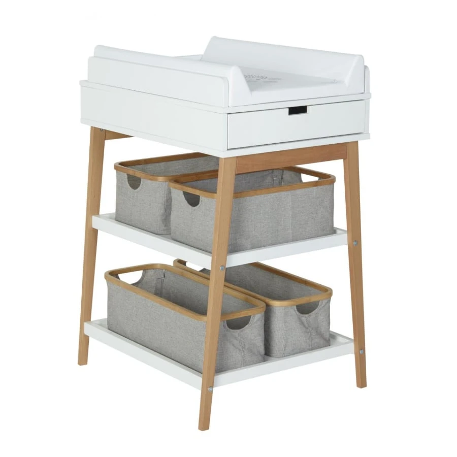 Possibilité d’ajouter des paniers pour ranger facilement tout le nécessaire pour changer Bébé.