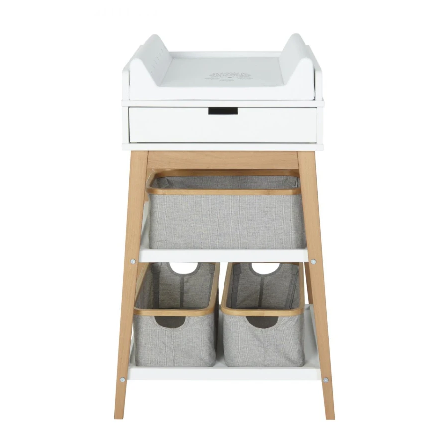 Table à langer avec tiroir Quax. Possède deux étagères fixes et un tiroir pour disposer toutes les affaires de toilette de Bébé.