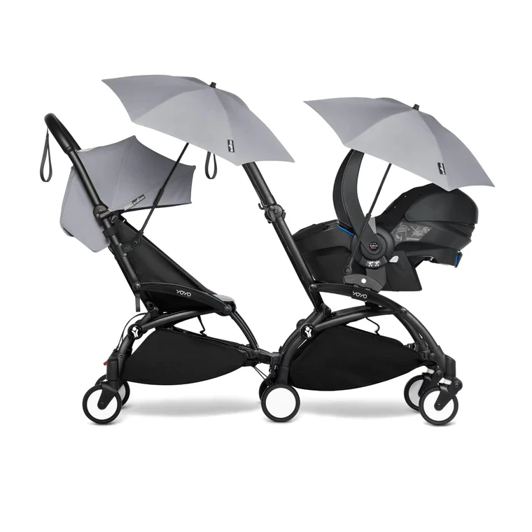 L’ombrelle s’adapte à toutes les versions de YOYO (pack nouveau-né, nacelle et pack couleur 6+) et se fixe également sur le siège-auto. Avec sa protection UPF 50+ et son opacité renforcée, elle protège encore mieux bébé du soleil.